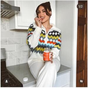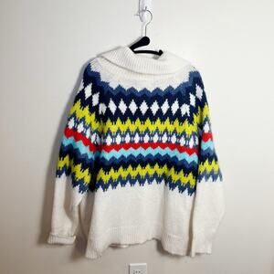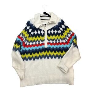 Aerie Womens Fairisle Quarter Zip Sweater Size L Multicolor Oversize New