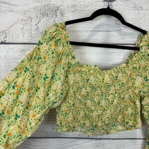 Aerie Women's Green Floral Long Sleeve Crop Blouse Size Medium