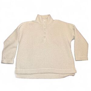 Aerie Women’s Large Sherpa Fleece Quarter Snap Pullover Ivory Cream Cozy Teddy J