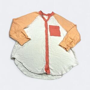 Aerie Womens Pool To Party Button Down Cover Up Shirt Crinkle Gauze Top S FLAW