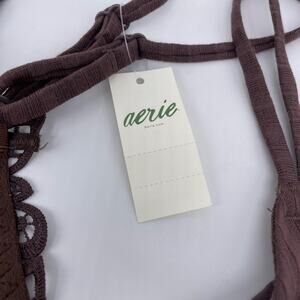 Aerie Women's Ribbed Applique Lace Longline Bralette Brown Size Large