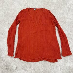 Aerie Women's Rust Colored Long Sleeve Cotton Blouse with Pocket Size S