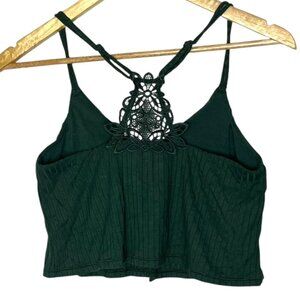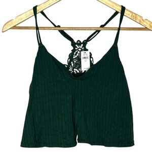 Aerie Women's S Lace Racerback Cropped Tank Top Dark Emerald Green Ribbed New