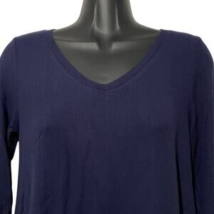 Aerie Womens Size Medium Blue V Neck Thermal Waffle Knit Long Sleeve Shirt Top