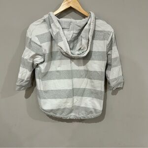 Aerie Women’s Size Medium Cropped 3/4 Sleeve Hooded Sweater Grey/White Striped