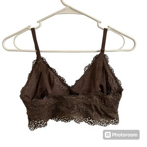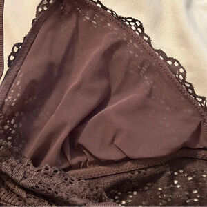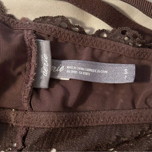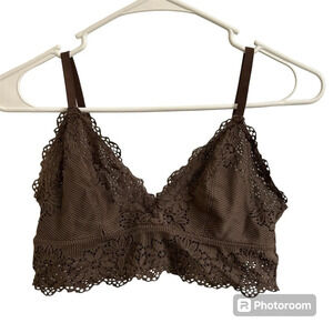 Aerie Women’s Sm Brown Floral Lace Ribbed Unlined Bralette Lightweight Feminine