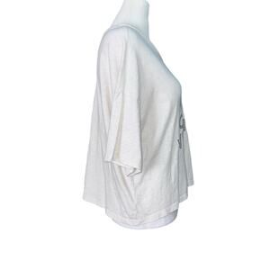 Aerie Christmas Sparkle You’re On My Wishlist Short Sleeve Cream Boxy Top Sz Medium, Heather Cream color with silver sparkle graphic print, short on the torso, boxy fit, so festive and flirty