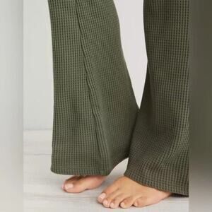 Aerie Women's Waffle High Waisted Flare Pant Lounge Leggings Olive Fun Green