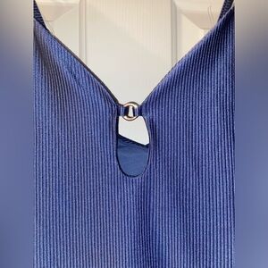 Elegant navy swimsuit with cheeky cut. Features soft fabric and comfortable fit.