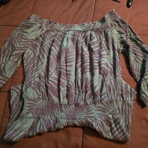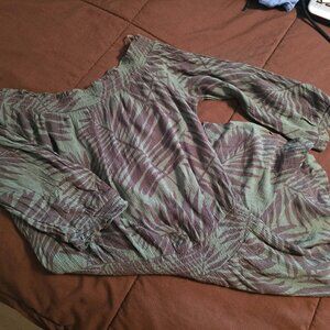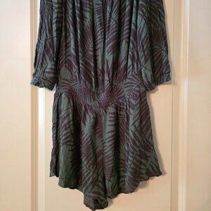 Aerie Womens XS Extra Small Green Leaf Print Off The Shoulder Shorts Romper CUTE!. No rips, stains or odors.