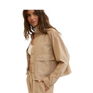 Aerie Womens size XL Canvas Button Up Lifestyle Academia Cropped Chore Jacket