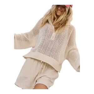 Aerie Womens size XL Oversized Crochet Quarter Zip Open Knit Ribbed Prep Sweater