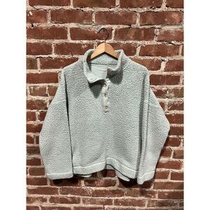 Aerie Womens Grey 1/4 Button Up Mock neck Fleece Sweatshirt Size Medium