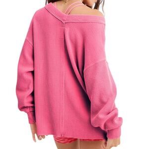 Cozy, slouchy, and perfect for that soft, comfy aesthetic. This Aerie waffle-knit V-neck pullover comes in a bold pink shade with raw-edge seams, dropped shoulders, and an intentionally oversized fit. Lightweight yet warm, great for lounging, layering, or casual everyday wear. Perfect for: Cozycore, Lounge, Athleisure, Balletcore Color Pops, Everyday Basics.