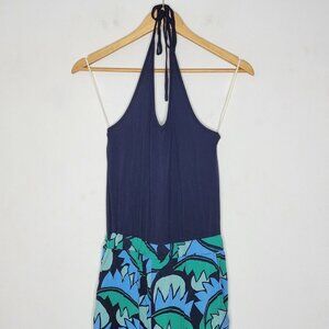 Aerie XS Navy Blue / Multicolored Patterned Halter Neck Women's Jumpsuit