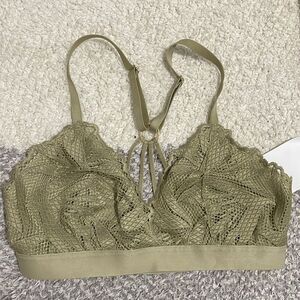 Sage green, lace overlay, unlined, bralette, strappy X back