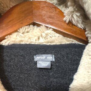 Aerie XS Sherpa-Lined Black Hoodie With Drawstrings & Kangaroo Pocket