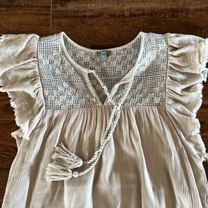 Aerie boho mini dress. Raw sleeves and hem. Embroidered top. XS. Cream color EUC