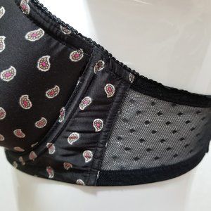 Paisley print push-up bra. Ruched bust. Unlined polka dot (swiss dot) mesh side wings. Two hook closure, three lengths. 2013, style 4012.