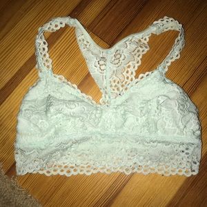 Light blue razorback lace Aerie bralette size S/P no padding but has extra cloth so you aren’t exposed. Very comfortable