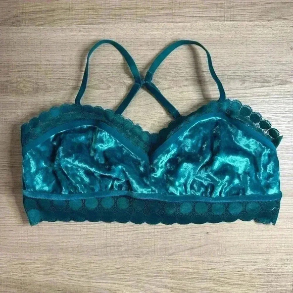 Aerie bralette turquoise velvet and lace sz M Excellent condition