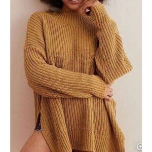 Aerie burnt orange oversized knit exposed seam sweater dmall