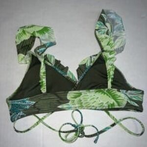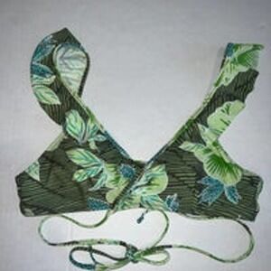 Aerie cross cross tie ruffle print bikini top and green bikini bottom Size m Good preowned condition