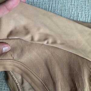 Chic bikini bottom in a soft tan shade. Ideal for summer fun.