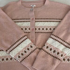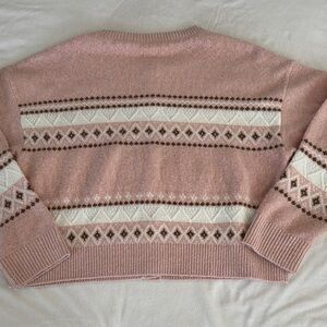 Aerie fuzzy Stay cozy and stylish with this pink patterned sweater. Cozy soft. Oversized feel and look. Perfect for any casual outing.pit to pit 24 1/2 sleeve 23” length 22” Gently used. Some pilling clean.