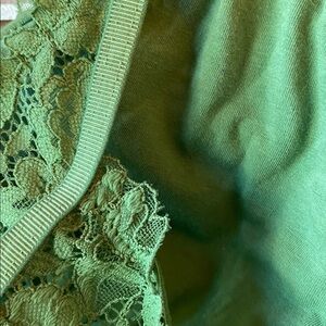 Aerie green lace bralette, lined, non-padded, size large. The bralette is lined with a soft t-shirt like fabric. Excellent pre-owned condition. Please see pictures for further details. Bundle 2 or more items for a 20% discount (bundle up to a 5 pound weight limit without needing to purchase another shipping label). Reasonable offers are welcome. I will either accept or counter. Thank you for checking out my Poshmark closet.