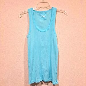 Aerie light blue teal ribbed tank top womens size Large