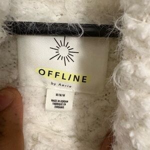 Aerie like new🥰🐩White fuzzy Cowl Neck Sweater with Soft Knit Texture
