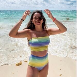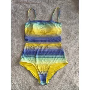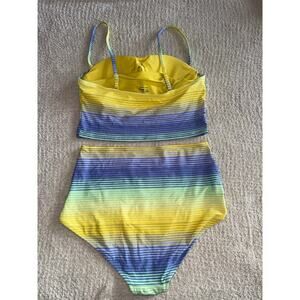 Aerie longline bandeau top and high waist bottom bikini yellow stripe size med