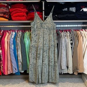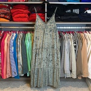 Aerie sage crushed velvet adjustable strap tiered maxi dress size M