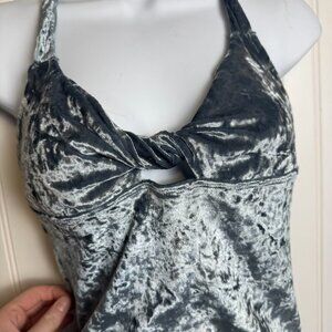 Aerie silvery blue velvet bodysuit keyhole front twist size medium P20