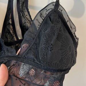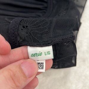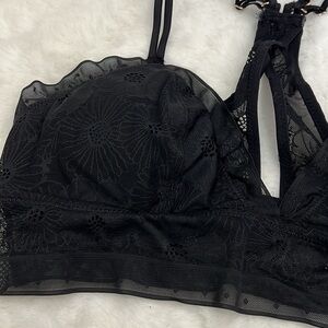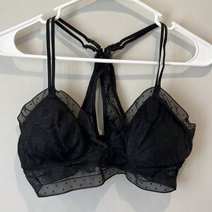 Aerie size L wireless bralette black lace with ruffle detail racerback pull on