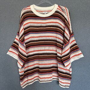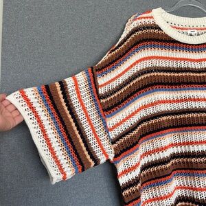 Aerie size XL oversized short sleeve crochet sweater colorful stripe 100% cotton