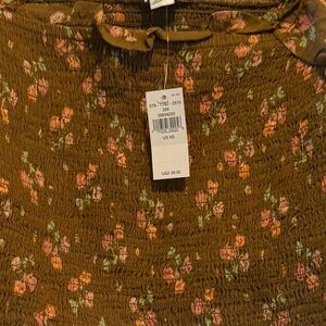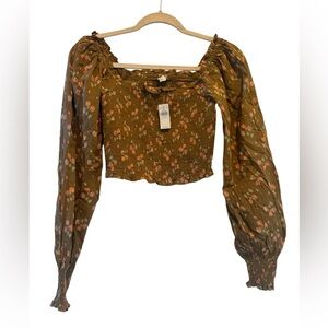 Aerie smocked bodice floral Crop Blouse XS cottage core NWT Boho puff fairy