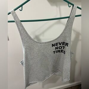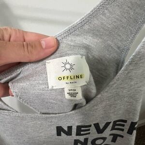Women’s cotton athletic open tie back tank top, worn twice otherwise brand new. “Never not tired” size small, offline by aerie.