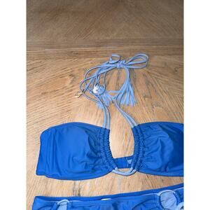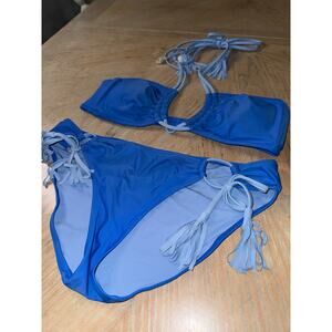 Aerie tassel scoop bikini top and tie hipster bottom blue size medium