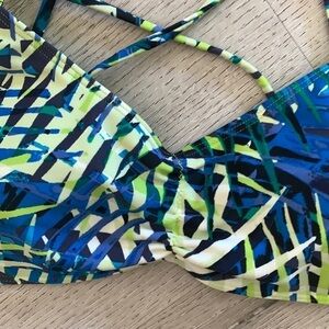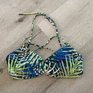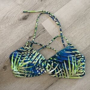 Aerie, tie-back‎ bikini top, removable pads. Neon green blue tropical