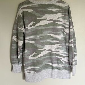 Color in person is most similar to first photo, print is 2 shades of green and purple on a gray background