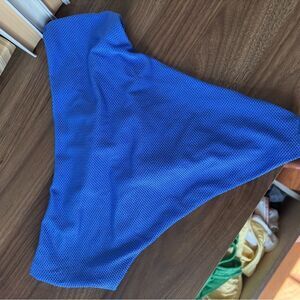Dive into style with this vibrant blue women's swimwear set. Perfect for a day at the beach or pool. Triangle top size small, high waisted V bottoms size medium
