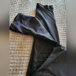 Stylish black high-waisted leggings with ribbed detailing. Perfect for workouts or casual wear.