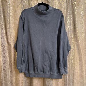 Great very gently used condition, smoke and pet free home. No major flaws or signs of wear. Very soft and comfortable. Great for casual Winter or Fall wear. The color is what I would describe as a Charcoal Gray. Ribbed mock neck, bottom hem and wrists. Great for any Fall adventure or hiking/camping! Oversized and can fit bigger, see measurements below. Cotton blend, not a ton of stretch.