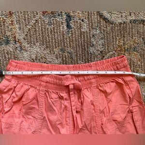 Chic coral cargo pants with a comfortable fit. Features drawstring waist and multiple pockets. Excellent condition