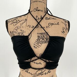 Aerie Cut Out Halter Bandeau Bikini Top Strappy Padded Women Small Black NWT
