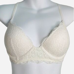 Aerie Demi Push Up Floral Lace 32D Bra Ivory White