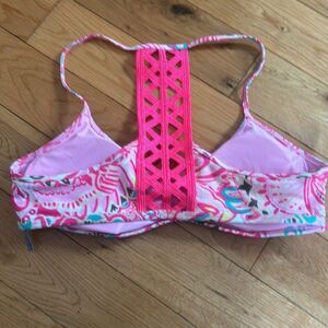 Aerie EUC pink/blue/yellow patterned bikini top Size large