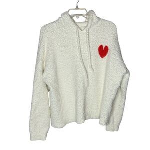 Aerie Fuzzy Off White Hoodie With Red Heart. Size Small. Soft and cozy hoodie with a cute red heart. Ideal for casual wear.